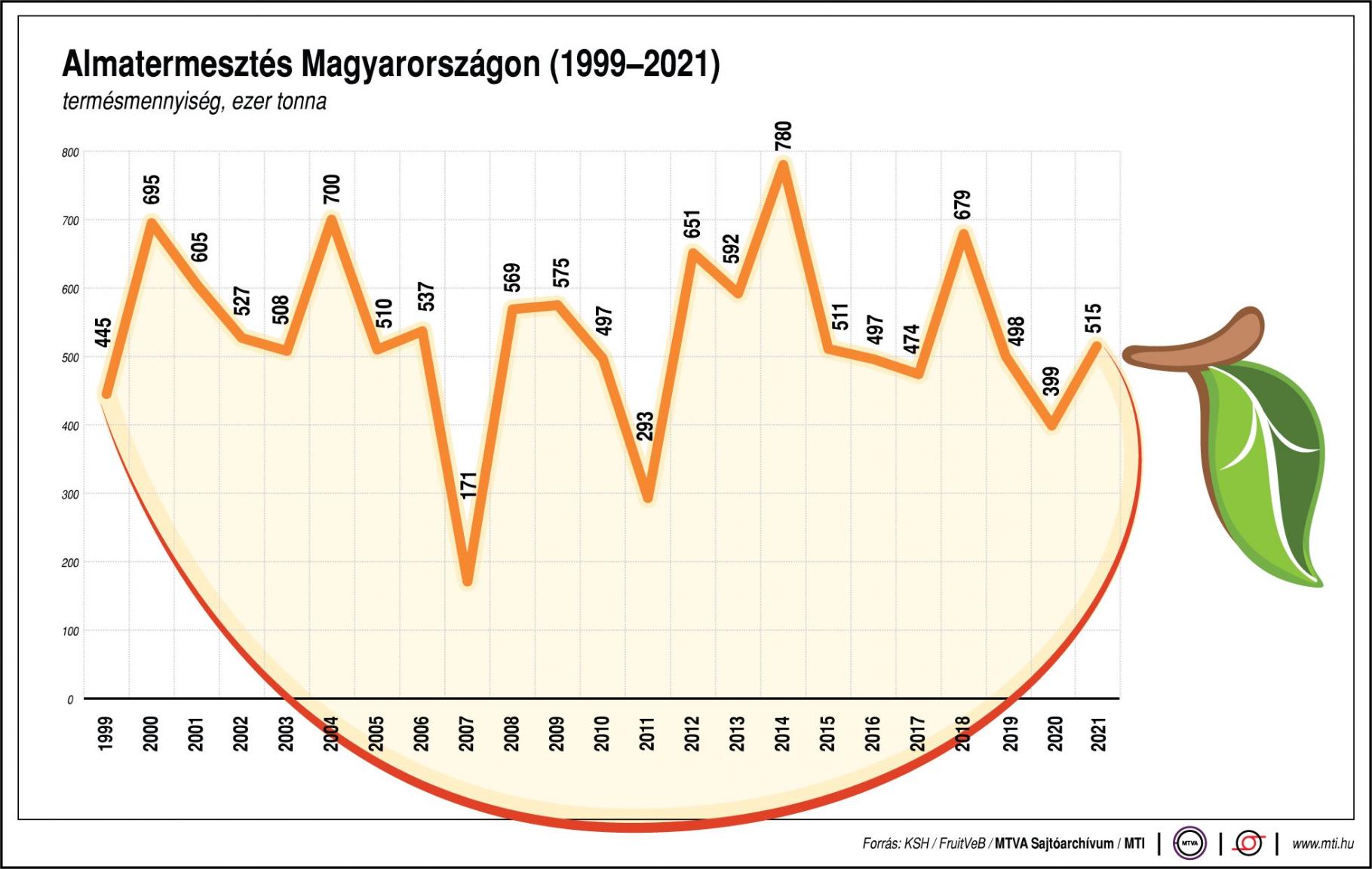 Budapest, 2022. augusztus 16., kedd (MTI) - Minden idők egyik leggyengébb almatermése várható az idén a szárazság és a hőség miatt Magyarországon - olvasható a Fruitveb Magyar Zöldség-Gyümölcs Szakmaközi Szervezet keddi közleményében.