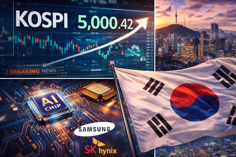 A dél-koreai részvénypiac történelmi mérföldkőhöz ért: a KOSPI index először lépte át az 5 000 pontos szintet, ami önmagában is jelzésértékű a globális kockázatvállalási hangulat szempontjából.