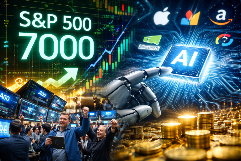 Az amerikai részvénypiac új mérföldkőhöz ért: az S&P 500 először lépte át a 7000 pontos szintet, és bár a záróérték hajszállal a kerek szám alatt maradt, a mozgás jól mutatja, mennyire erős a technológiai részvényekre és az AI-sztorira épülő befektetői étvágy. A rali mögött egyszerre állt a nagy tech gyorsjelentési várakozás, az AI-kapcsolt vállalatok erős teljesítménye, és a kamatpályával kapcsolatos remény, hogy a következő hónapokban újra napirendre kerülhet a lazítás.