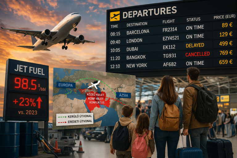 Aki mostanában nézett repülőjegyet a tavaszi szünetre, húsvétra vagy a korai nyári időszakra, jó eséllyel azt érezte, hogy valami megváltozott. Nem egyszerűen arról van szó, hogy „megint drágább lett a repülés”. A mostani helyzet ennél sokkal összetettebb: a repülőjegy-piacot egyszerre mozgatja a továbbra is erős utazási kedv, a közel-keleti konfliktus nyomán megugró üzemanyagköltség, valamint az útvonalak és kapacitások zavarai. Ez a három tényező együtt olyan árképzési környezetet hozott létre, amelyben ugyanazon a kontinensen belül is egészen más logika szerint viselkednek a jegyárak, mint a hosszú távú nemzetközi útvonalakon.