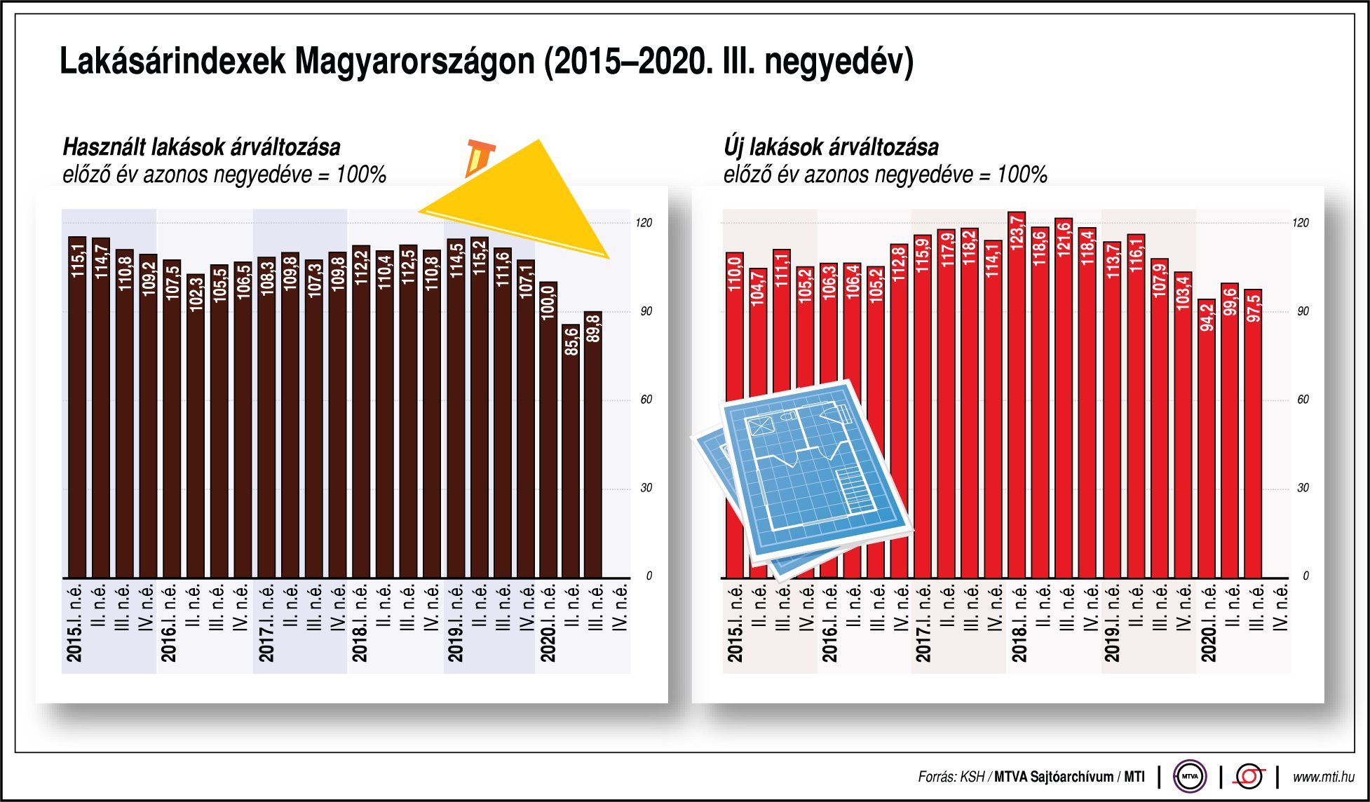 Budapest, 2021. január 20., szerda (MTI) - Tavaly a harmadik negyedévben éves összevetésben stagnálás és árcsökkenés jellemezte a lakáspiacot - közölte az az ingatlan.com szerdán az MTI-vel.