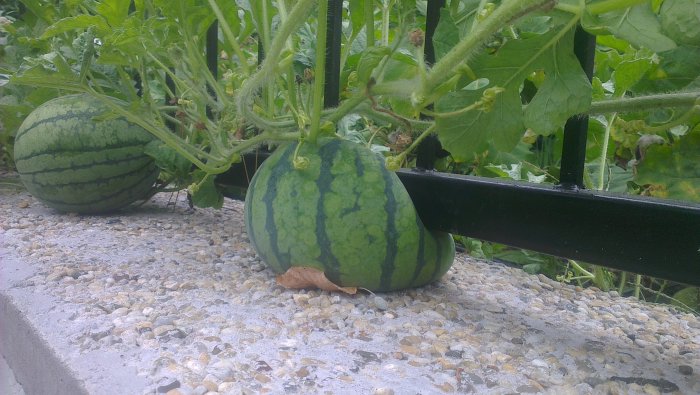 Kisebbik lányomnak ültettem egy kis dinnyét idén, azzal könnyű sikereket aratni és a dinnyetermesztésen keresztül hátha ráveszem a kertészkedésre. Nos, az egyik pici dinnye beszorult egy kerti korlát alá, aztán már nem tudtam kiszedni, úgyhogy ilyen mókás torzó lett. Lassan beleipisil Lőrinc, de ha mégis megérne, lehet, hogy hegesztőpiszollyal kell szüretelünk? :-)