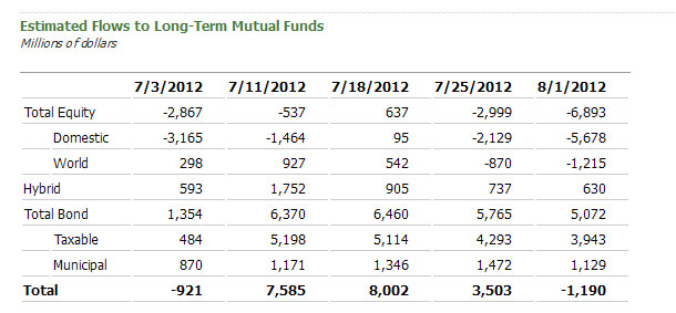 Hihetlen, milyen makacs utálat van a részvényekkel szemben. Adják, ha esik, adják, ha emelkedik. 2007 eleje óta immár 380 (!) mrd usd-t vett ki a lakosság a részvényalapokból.